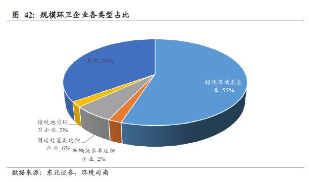 規(guī)模環(huán)衛(wèi)服務(wù)企業(yè)中,綠化保潔類企業(yè)占比過(guò)半,產(chǎn)業(yè)鏈上下游延伸趨勢(shì)漸顯。根據(jù)E20數(shù)據(jù)中心,規(guī)模環(huán)衛(wèi)服務(wù)企業(yè)中,綠化保潔類企業(yè)占比55%,傳統(tǒng)地方環(huán)衛(wèi)企業(yè)占比2%。綠化保潔類企業(yè)、傳統(tǒng)地方環(huán)衛(wèi)企業(yè)總占比過(guò)半,大多在環(huán)衛(wèi)領(lǐng)域深耕多年,在環(huán)衛(wèi)市場(chǎng)化進(jìn)程加速的情況下,充分利用多年環(huán)衛(wèi)服務(wù)運(yùn)營(yíng)經(jīng)驗(yàn)的優(yōu)勢(shì)獲取訂單,擴(kuò)大環(huán)衛(wèi)服務(wù)市場(chǎng)的市場(chǎng)份額。綠化保潔類企業(yè)以僑銀環(huán)保、玉禾田為典型代表,傳統(tǒng)地方環(huán)衛(wèi)企業(yè)以地方政府優(yōu)勢(shì)資源為依托開(kāi)展布局,代表企業(yè)包括北京環(huán)衛(wèi)等。產(chǎn)業(yè)鏈上下游延伸趨勢(shì)逐漸凸顯,由環(huán)衛(wèi)服務(wù)上游向下游延伸的企業(yè)典型為龍馬環(huán)衛(wèi)和中聯(lián)環(huán)境,從單一的環(huán)衛(wèi)裝備制造向環(huán)衛(wèi)服務(wù)市場(chǎng)延伸,充分利用多年積累的政府客戶資源優(yōu)勢(shì),占領(lǐng)環(huán)衛(wèi)服務(wù)市場(chǎng)板塊;由環(huán)衛(wèi)服務(wù)下游向上游延伸的企業(yè)典型為啟迪桑德,從垃圾最終處臵業(yè)務(wù)向環(huán)衛(wèi)服務(wù)市場(chǎng)延伸,借著當(dāng)前環(huán)衛(wèi)一體化項(xiàng)目的契機(jī)拓展環(huán)衛(wèi)服務(wù)業(yè)務(wù)。