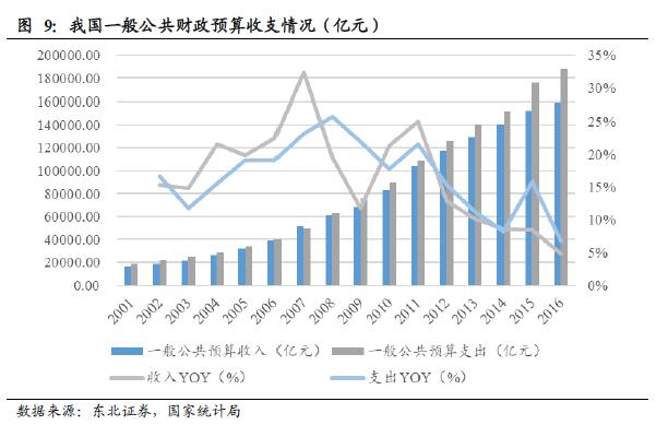 政府承受政績(jī)考核和財(cái)政收支雙重壓力。從政績(jī)考核方面來(lái)講,地方政府對(duì)環(huán)衛(wèi)服務(wù)的重視程度比較高。一方面,在上級(jí)政府對(duì)下級(jí)城市的檢查項(xiàng)目中,城市的市容環(huán)境常常是被調(diào)查的最普遍的一個(gè)指標(biāo),另一方面,環(huán)衛(wèi)服務(wù)也常常是類似于“文明城市”等等此類評(píng)選創(chuàng)優(yōu)活動(dòng)的重要檢查科目。從財(cái)政收支方面來(lái)講,環(huán)衛(wèi)服務(wù)資金投入大部分依靠地方政府公共財(cái)政支出,而當(dāng)前地方財(cái)政收入增長(zhǎng)乏力,2016年財(cái)政支出繼續(xù)增長(zhǎng)率高于收入,增長(zhǎng)率為6.75%,財(cái)政赤字為28150.24億元,增長(zhǎng)率為19.24%。政府面臨地方財(cái)政、環(huán)境等多方壓力,自身也形成了將投資機(jī)會(huì)交給高效的社會(huì)資本的意愿。