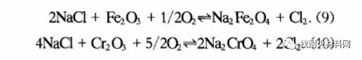 垃圾焚燒中的堿金屬氧化物,也是鍋爐高溫腐蝕的一個(gè)重要因素。這些堿金屬氧化物與HCl反應(yīng),形成堿金屬氯化物,然后冷凝沉淀在表面。沉積鹽中基于金屬氯化物硫酸鹽化作用機(jī)制,可見(jiàn)以下化學(xué)反應(yīng)式: