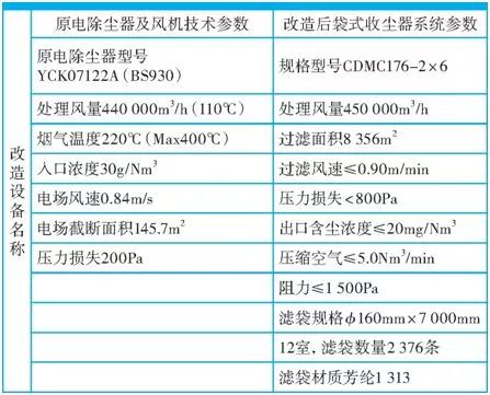 原窯頭電除塵系統(tǒng)參數(shù)及改造為袋收塵系統(tǒng)參數(shù)對比(見表1)。改造后排放指標(biāo)(見表2)。