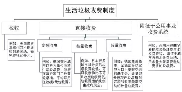 國(guó)際上,生活垃圾收費(fèi)制度主要包括三種類(lèi)型:稅收方式、直接收費(fèi)方式和附征于公用事業(yè)收費(fèi)系統(tǒng)方式。