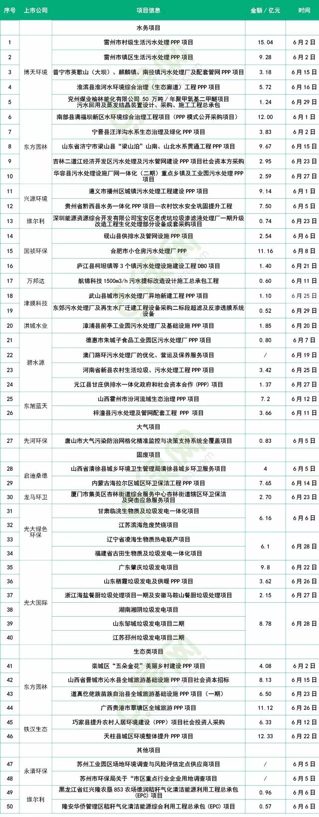 光大國際本月中標(biāo)13個項(xiàng)目,包括9個垃圾焚燒發(fā)電項(xiàng)目、2個餐廚垃圾處理項(xiàng)目、1個危廢處理項(xiàng)目和1個綜合處理項(xiàng)目,涉及總金額高達(dá)47.61億。值得一提的是,斬獲13項(xiàng)目的光大國際成為本月中標(biāo)項(xiàng)目數(shù)量最多的企業(yè)。