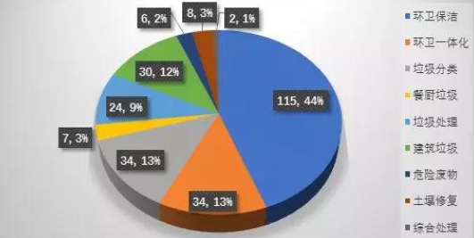環(huán)衛(wèi)保潔項(xiàng)目數(shù)量近半,分布區(qū)域持續(xù)廣泛