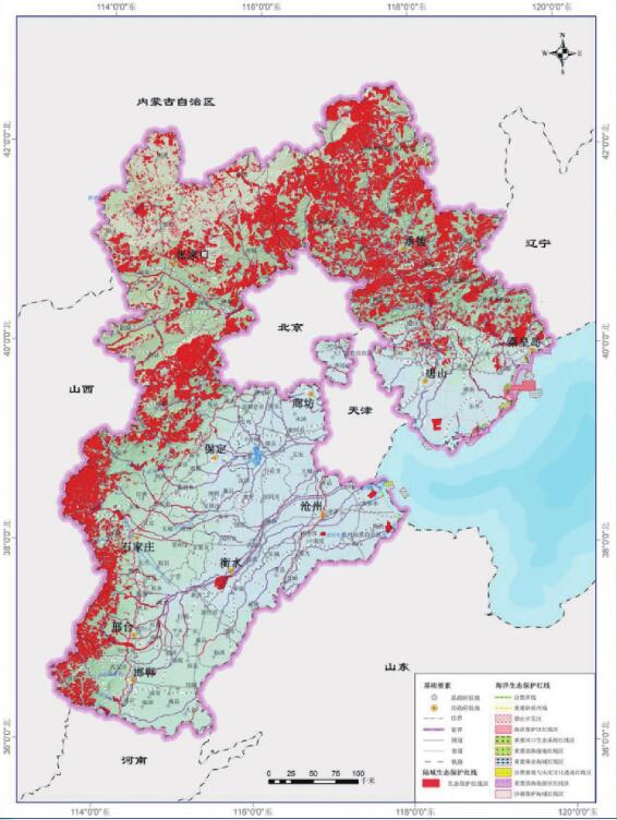 分布范圍:該區(qū)屬華北平原北部區(qū),南到河南省界,北至燕山,西鄰太行山,東瀕渤海。生態(tài)保護紅線主要分布于廊坊、滄州、衡水市,秦皇島、唐山市南部,保定、石家莊、邢臺、邯鄲市東部。生態(tài)保護紅線面積1618平方公里,占全省陸域面積的0.86%。
