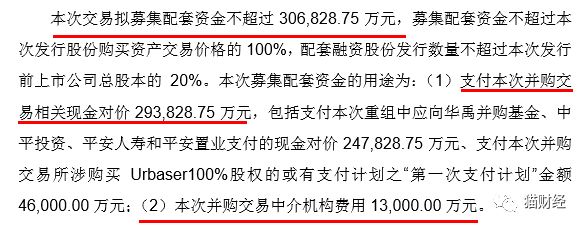但根據(jù)交易方案,此次收購對價(jià)為88.82億元,其中擬以股份方式支付對價(jià)64.04億元,以現(xiàn)金方式支付對價(jià)約24.78億元。本次交易擬募集配套資金不超過30.68億,其中24.78億用于支付收購的現(xiàn)金對價(jià),4.6億用于“或有支付計(jì)劃”,1.3億用于支付中介費(fèi)用。