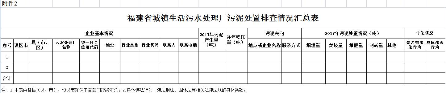 2.福建省城鎮(zhèn)生活污水處理廠污泥處置排查情況匯總表