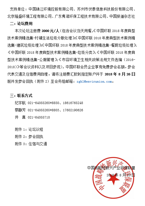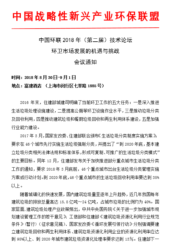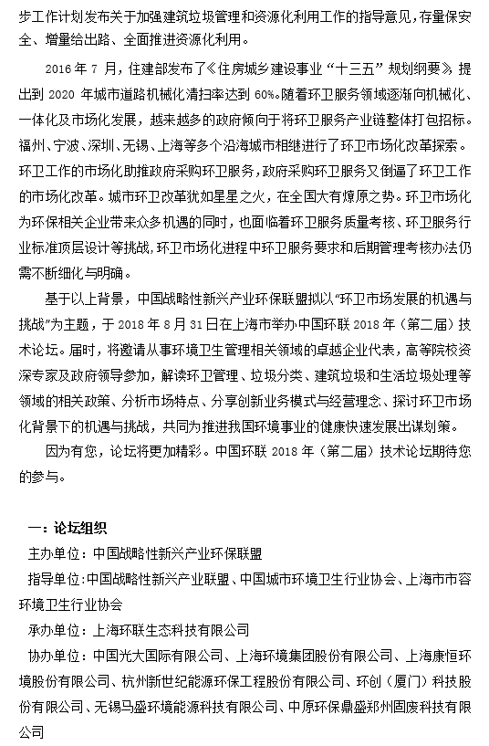中國環(huán)聯(lián)2018年(第二屆)技術論壇 環(huán)衛(wèi)市場發(fā)展的機遇與挑戰(zhàn)