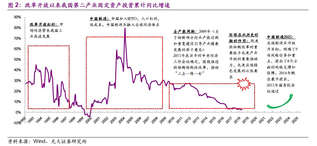 從經(jīng)濟(jì)周期上分析,設(shè)備投資周期(朱格拉周期)和創(chuàng)新周期(康德拉耶夫周期)前者6-11年,后者則需要50-70年;中國人口紅利漸行漸遠(yuǎn),發(fā)展制造業(yè)高端技術(shù),提升國際分工地位的需求越來越旺盛。我國在此時點深入強化環(huán)境保護(hù)和生態(tài)理念,一方面是因為環(huán)境問題確實深刻影響了人民的幸福感,另一方面也不可忽視當(dāng)前特殊的經(jīng)濟(jì)歷史時期:環(huán)保既是供給側(cè)改革的重要抓手也是產(chǎn)業(yè)升級的重要推動力,還是實現(xiàn)綠色發(fā)展的必然要求。在實現(xiàn)中國制造2025的過程中,隨著工業(yè)體系升級和綠色生產(chǎn)深入人心,環(huán)保監(jiān)管提升,新設(shè)備、工藝需求將帶動新時期環(huán)保產(chǎn)業(yè)煥發(fā)生機。