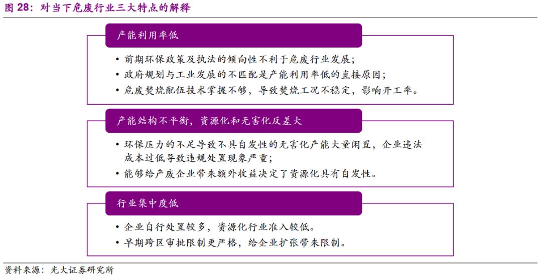 我們認(rèn)為,當(dāng)前危廢行業(yè)的三大痛點分別是:產(chǎn)能利用率低、產(chǎn)能結(jié)構(gòu)不平衡和行業(yè)集中度低。