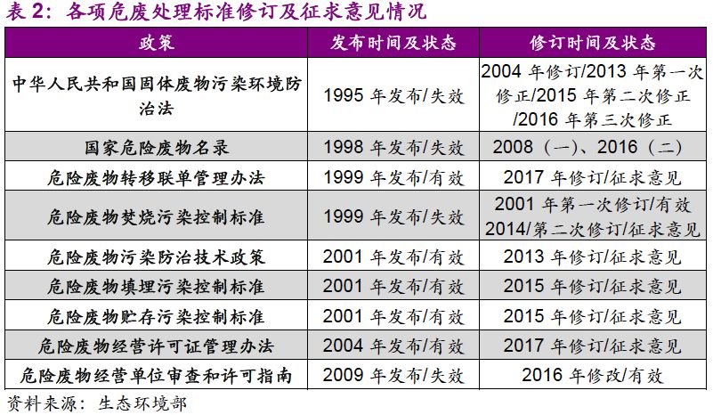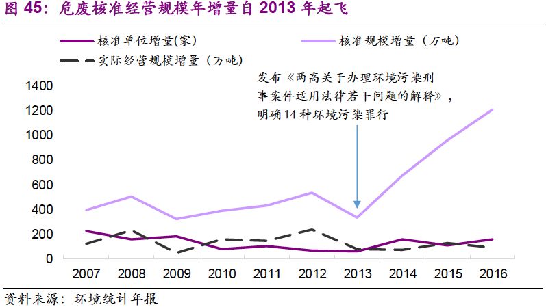 2016年12月,最高人民法院、最高人民檢察院再次發(fā)布關(guān)于辦理環(huán)境污染刑事案件適用法律若干問題的解釋,對違法傾倒、無證經(jīng)營危險廢物行為進(jìn)行從重處罰,再次推高危廢行業(yè)熱度。