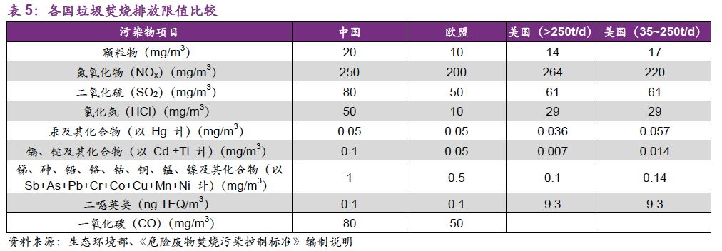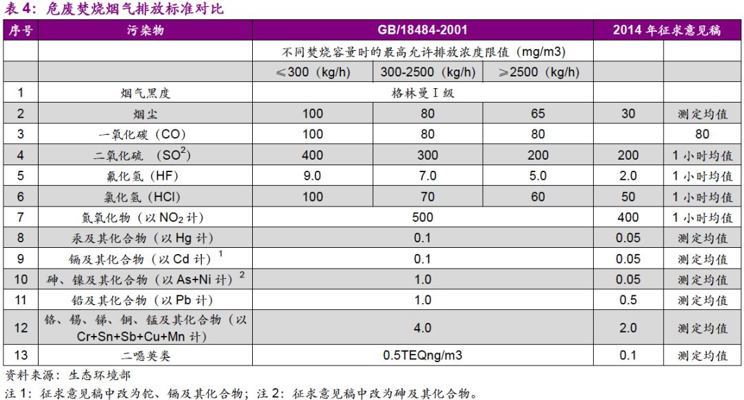 危廢行業(yè)提標(biāo)是必然趨勢。對比生活垃圾焚燒領(lǐng)域,2014年出臺的《生活垃圾焚燒污染控制標(biāo)準(zhǔn)》/GB18458-2014在二噁英、汞及其化合物指標(biāo)上就已經(jīng)達(dá)到了歐盟標(biāo)準(zhǔn)。2017年8月,《〈生活垃圾焚燒污染控制標(biāo)準(zhǔn)〉(GB18485-2014)修改單(征求意見稿)》編制說明中明確提出參照歐盟《歐盟工業(yè)排放指令》(2010/75/EC)。因此,危廢領(lǐng)域排放標(biāo)準(zhǔn)向歐盟靠齊是必然趨勢。