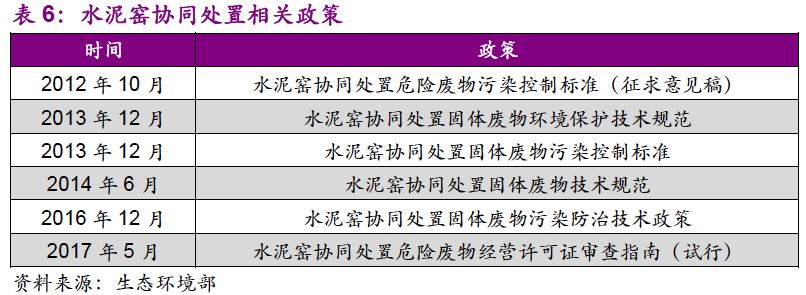 3. 對水泥窯協(xié)同處置持謹(jǐn)慎態(tài)度,行業(yè)發(fā)展面臨規(guī)范化約束,本身實力雄厚、管理規(guī)范的水泥企業(yè)有望依托自身資源,快速布局全國市場并接受標(biāo)準(zhǔn)提升考驗。