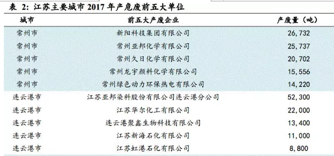 江蘇省產(chǎn)廢企業(yè)來(lái)源廣:以化工、石化、電子等危廢為主。