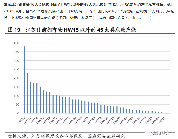 上述數(shù)據(jù)說(shuō)明,江蘇省焚燒和填埋能力非常稀缺,而焚燒和填埋是處理難處理危廢的重要手段。
