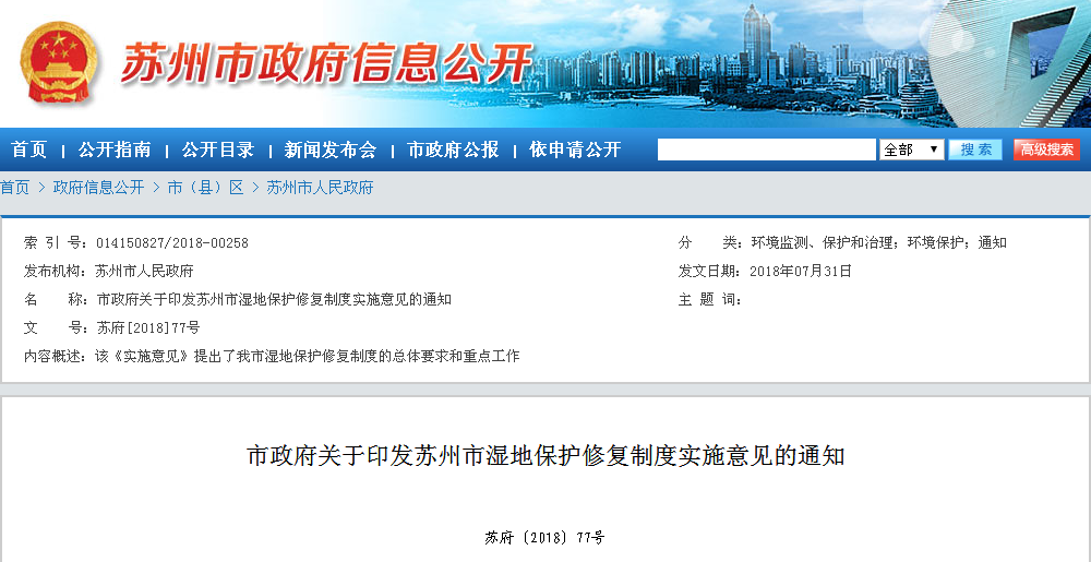 江蘇省蘇州市人民政府于近日發(fā)布了《蘇州市濕地保護修復(fù)制度實施意見》,具體內(nèi)容如下: