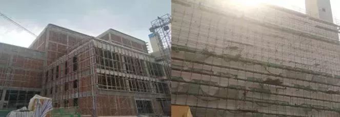 綜合樓四層墻體砌磚完成50%,一層墻體抹灰。