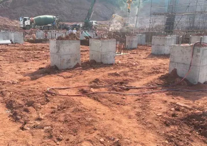 (6)煙囪基礎開挖完成,墊層澆筑完成;
