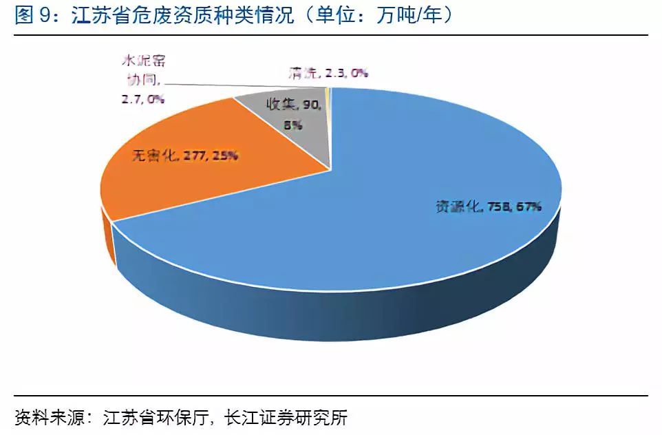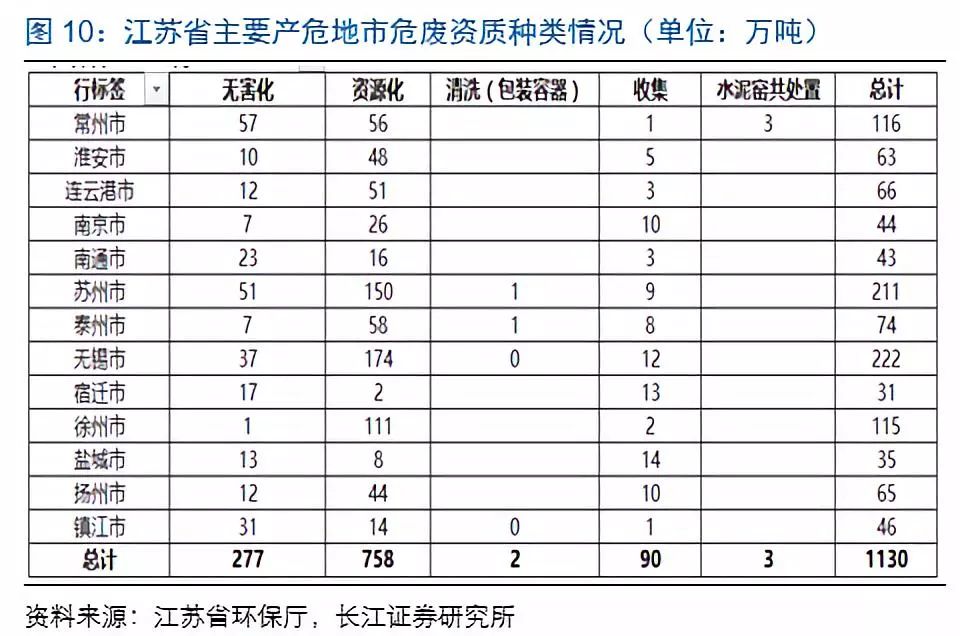 無害化資質(zhì)相對(duì)稀缺,其中,徐州、泰州、南京、淮安無害化資質(zhì)沒超過10萬噸,資質(zhì)相對(duì)緊缺。