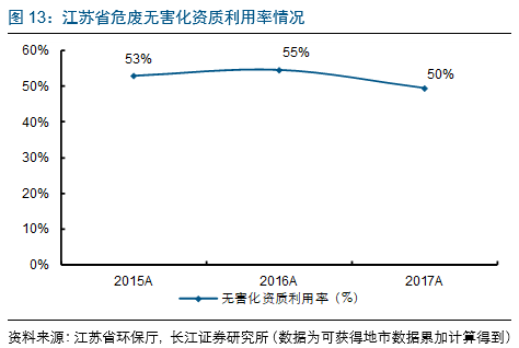 近3年江蘇無害化資質(zhì)利用率維持在50%-55%