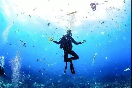 一名潛水愛好者在印尼海域潛水時被塑料垃圾包圍