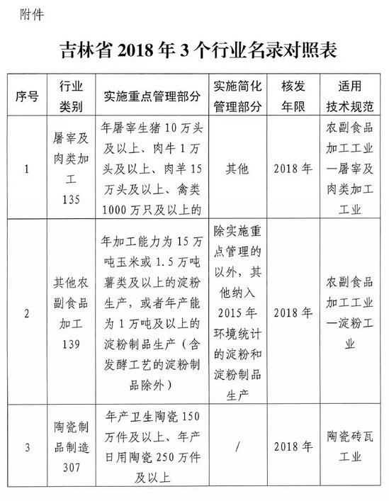 根據(jù)《國(guó)務(wù)院辦公廳關(guān)于印發(fā)控制污染物排放許可制實(shí)施方案的通知》(國(guó)辦發(fā)【2016】81號(hào))、《排污許可管理辦法試行》(環(huán)保部第48號(hào)令)、《固定污染源排污許可分類(lèi)管理名錄》(環(huán)保部第45號(hào)令)要求,吉林省現(xiàn)開(kāi)展2018年屠宰及肉類(lèi)加工、淀粉、陶瓷磚瓦3個(gè)行業(yè)的排污許可證申請(qǐng)與核發(fā)工作。詳情如下: