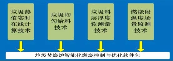 垃圾焚燒智能化燃燒控制技術(shù)的實際應(yīng)用技術(shù)主要包括:爐膛火焰輻射溫度場與料層厚度監(jiān)測技術(shù)、垃圾熱值計算校核控制系統(tǒng)和風量配比方案與控制算法與技術(shù),生活垃圾熱值在線計算算法軟件包的應(yīng)用,垃圾焚燒爐在垃圾熱值不穩(wěn)定情況下的風量配比方案與控制算法,垃圾焚燒廠運行的控制參數(shù)模糊化在線調(diào)整技術(shù)、與DCS的協(xié)調(diào)技術(shù)、數(shù)字化測控與接口等技術(shù)。