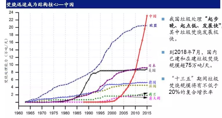 接著分別介紹了全球不同區(qū)域的垃圾處理狀況,分析了歐州、英國(guó)、美國(guó)、日本等國(guó)家的垃圾處理能力,總結(jié)了國(guó)際垃圾處理的發(fā)展形勢(shì):英國(guó)垃圾焚燒成為歐洲最大的新興市場(chǎng);日本不同類型焚燒設(shè)施總數(shù)減少但大廠增加,總處理量基本穩(wěn)定,發(fā)展相對(duì)成熟;美國(guó)近年來(lái)處于停滯狀態(tài);中國(guó)的垃圾處理發(fā)展正在進(jìn)入全速發(fā)展階段。