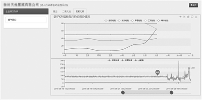 根據(jù)圖中抽查錨點,可以查看詳細(xì)的現(xiàn)場檢查記錄,由于企業(yè)箱體檢驗得分較低,通過一次現(xiàn)場檢查,發(fā)現(xiàn)了企業(yè)通過現(xiàn)場的工控機(jī)模擬產(chǎn)生數(shù)據(jù),存在自動出數(shù)的問題,從上圖曲線中可以明顯看出:現(xiàn)場檢查、企業(yè)整改后,在線監(jiān)控數(shù)據(jù)曲線恢復(fù)了正常。
