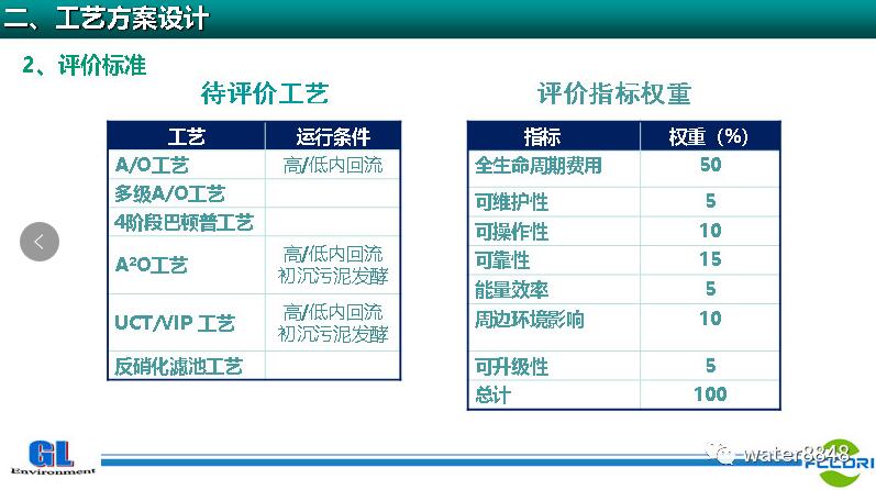 根據(jù)上述水質(zhì)要求,下圖列舉了具有脫氮除磷的污水處理工藝,并建立評價指標(biāo)體系對上述工藝進(jìn)行逐一評價,從中優(yōu)選了高內(nèi)回流的A/O工藝、分點進(jìn)水的多級A/O工藝、4階段的Bardenpho工藝。