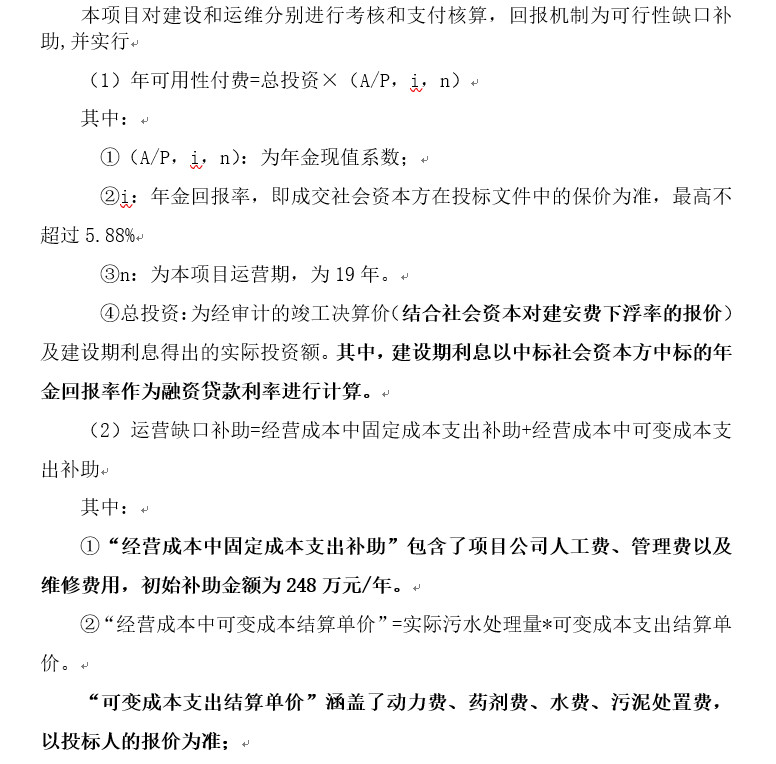 可行性缺口補助由政府支付給項目公司建設(shè)投資而形成固定資產(chǎn)部分的“可用性付費”,及政府對本項目適當(dāng)?shù)摹斑\營缺口補助”兩部分構(gòu)成。