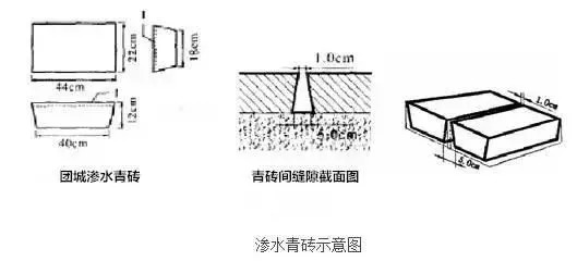 可以看到青磚之間形成一個(gè)三角形的縫隙。這樣的造型對排水的幫助是顯而易見的,這些青磚本身滲水透氣性就不錯(cuò),雨水透過青磚之間的接口,就進(jìn)入到地下三角形的縫隙當(dāng)中。磚縫越向下越開闊,雨水自然不容易停留在表層,而是滲入地下,通過地下水系統(tǒng)緩沖和滲排出去。