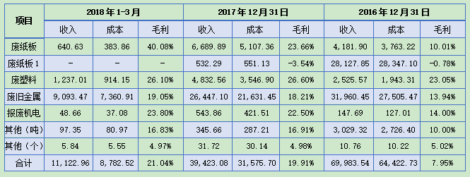 注:廢紙板1是指永川分公司的銷(xiāo)售業(yè)務(wù),現(xiàn)已基本停止廢紙業(yè)務(wù)。