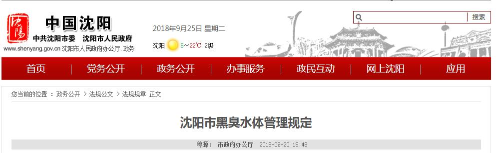 近日,沈陽市政府發(fā)布《沈陽市黑臭水體管理規(guī)定》,詳情如下: