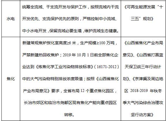 (1)在能源開發(fā)利用過程中,嚴(yán)格遵守國家和山西省的主體功能區(qū)規(guī)劃和生態(tài)功能區(qū)劃,不得在禁止開發(fā)區(qū)、環(huán)境敏感區(qū)及生態(tài)紅線等區(qū)域布局能源建設(shè)項目。在布局建設(shè)能源項目時,應(yīng)堅持“點上開發(fā)、面上保護”的原則,最大減輕對生態(tài)環(huán)境的不良影響。在布局煤電項目時應(yīng)盡可能兼顧周邊工業(yè)企業(yè)和居民集中供熱需求,采用熱電聯(lián)產(chǎn)或具備一定供熱能力的機組,以集中供熱替代分散小鍋爐供熱,削減污染物排放量。在布局煤化工項目時應(yīng)考慮水資源承載力,原則上要求不采用地下水。在水資源得到保障的前提下,要求煤電項目盡量與煤化工項目配套建設(shè),利用電廠鍋爐提供煤化工生產(chǎn)中需要的大量蒸汽,減少煤化工項目自備鍋爐的建設(shè)。在布局水電項目時應(yīng)充分考慮其生態(tài)影響,防止對水生態(tài)、水生物造成重大不利影響。水電項目下泄水須滿足壩址下游河道水生生態(tài)、水環(huán)境、景觀、濕地等生態(tài)環(huán)境用水及下游生產(chǎn)、生活取水要求,不得造成脫水河段和對農(nóng)灌、水生生物造成重大不利影響。涉及水生珍稀特有物種重要生境等河段嚴(yán)格水電環(huán)境準(zhǔn)入。