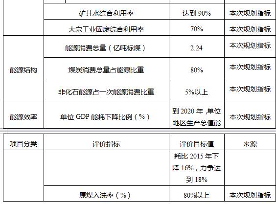 到2020年,單位地區(qū)生產(chǎn)總值二氧化碳排放強度完成國家下達(dá)指標(biāo);能源領(lǐng)域二氧化硫、氮氧化物、煙塵、工業(yè)粉塵排放總量控制在國家下達(dá)約束指標(biāo)以內(nèi)。礦井水綜合利用率達(dá)到90%,大宗工業(yè)固廢綜合利用率達(dá)到70%。劣Ⅴ類水體比例在15%以內(nèi)。礦山生態(tài)修復(fù)治理取得重大進(jìn)展。