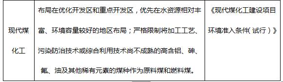 (一)嚴(yán)格執(zhí)行《關(guān)于落實<水污染防治行動計劃>實施區(qū)域差別化環(huán)境準(zhǔn)入的指導(dǎo)意見》和《現(xiàn)代煤化工建設(shè)項目環(huán)境準(zhǔn)入條件》的相關(guān)要求,在保護生態(tài)的前提下,科學(xué)布局煤化工產(chǎn)業(yè)。