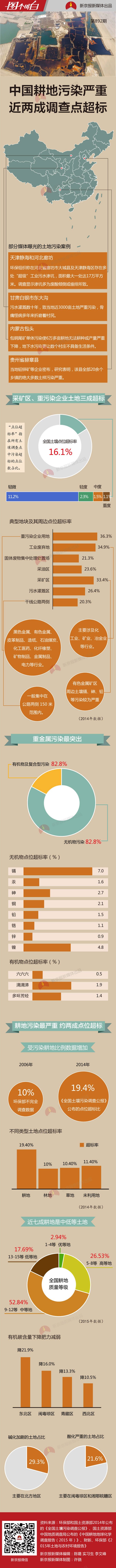 中國土壤污染問題有多嚴(yán)重?目前能找到的最權(quán)威、最全面的數(shù)據(jù)來自2014年環(huán)保部和國土資源部共同發(fā)布的《全國土壤污染狀況調(diào)查公報》。數(shù)據(jù)顯示,全國土壤總的超標(biāo)率為 16.1%,其中最嚴(yán)重的耕地,調(diào)查點位超標(biāo)達(dá)到19.4%。