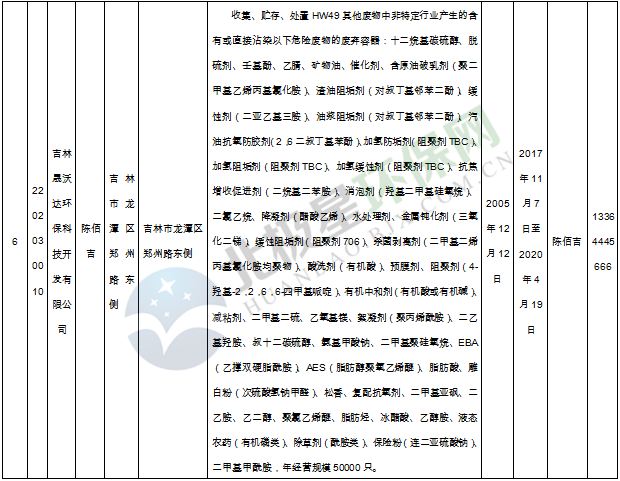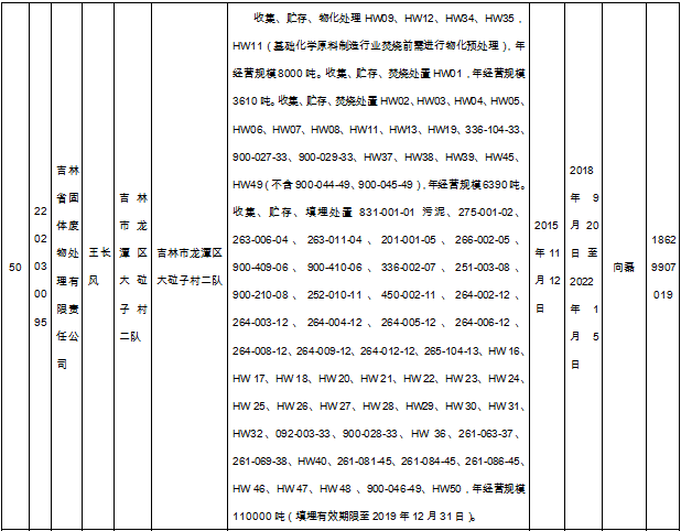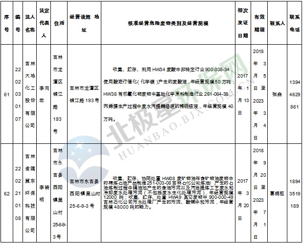 北極星固廢網(wǎng)獲悉嗎,日前吉林省環(huán)保廳發(fā)布了《吉林省危險廢物經(jīng)營許可證持證企業(yè)名單(2018年9月更新)》,共涉及74家企業(yè),且附有聯(lián)系方式。具體內容如下: