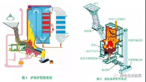 其中焚燒爐是垃圾焚燒發(fā)電的核心,決定著垃圾處理的效果和運行的經(jīng)濟性。焚燒爐充分燃燒后才能達到無害化和減量化的目標。常用的焚燒爐有爐排爐、流化床焚燒爐、熱解焚燒爐、回轉(zhuǎn)窯等類型。下面介紹最為常見的爐排爐和循環(huán)流化床兩種模式。