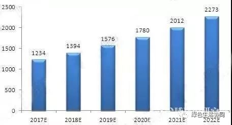 根據(jù)規(guī)劃的相關(guān)目標和標準,預計我國垃圾焚燒爐以年均復合增長率17.23%的速度增長,到2022年我國垃圾焚燒爐將達到2273臺,是當前焚燒爐數(shù)量的2倍之多。下圖是對中國垃圾焚燒爐行業(yè)市場規(guī)模的預測。