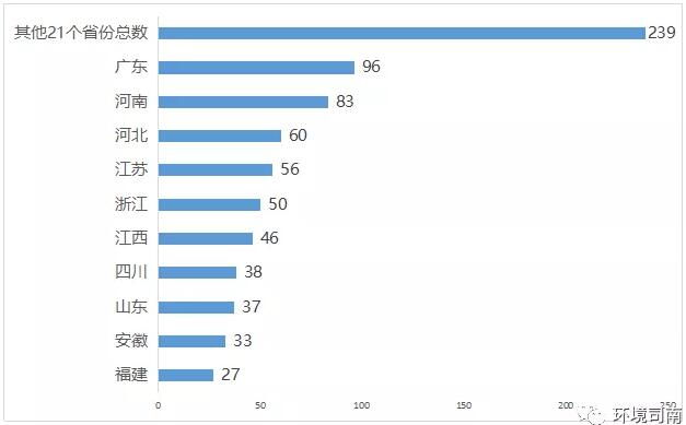 容易出環(huán)衛(wèi)大項目的10個省份中,廣東、江蘇、浙江、山東、四川等五個省為傳統(tǒng)環(huán)衛(wèi)大省,河南、河北、福建、江西、安徽等五個省為新興環(huán)衛(wèi)大省。