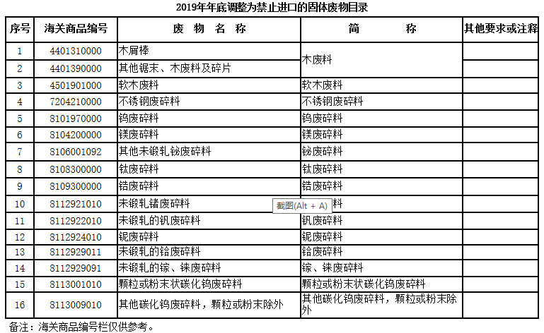 2.2019年年底調(diào)整為禁止進(jìn)口的固體廢物目錄