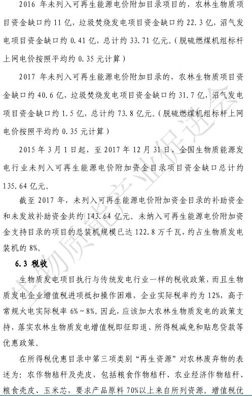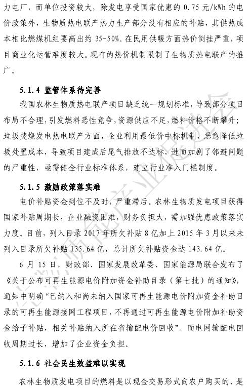 《報(bào)告》指出:部分垃圾焚燒發(fā)電企業(yè)惡性競(jìng)爭(zhēng)導(dǎo)致垃圾處理費(fèi)減少,使垃圾焚燒發(fā)電項(xiàng)目對(duì)垃圾電價(jià)依賴性增加?!秷?bào)告》還提出:去補(bǔ)貼化是各類可再生能源發(fā)展的必然趨勢(shì),截至2017年,未列入可再生能源電價(jià)附加資金目錄的補(bǔ)助資金和未發(fā)放補(bǔ)助資金共約143.64億元,其中農(nóng)林生物質(zhì)約64.1億元。