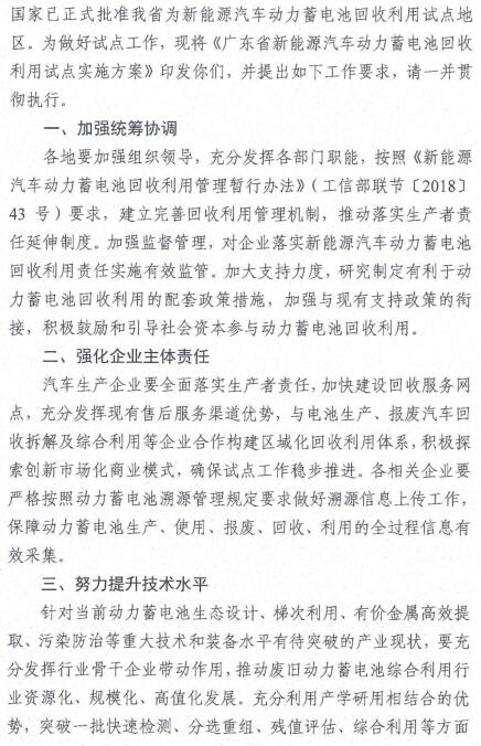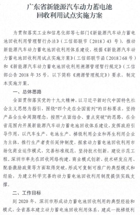 日前,廣東省環(huán)保廳公布了《廣東省新能源汽車動力蓄電池回收利用試點實施方案》,詳情如下: