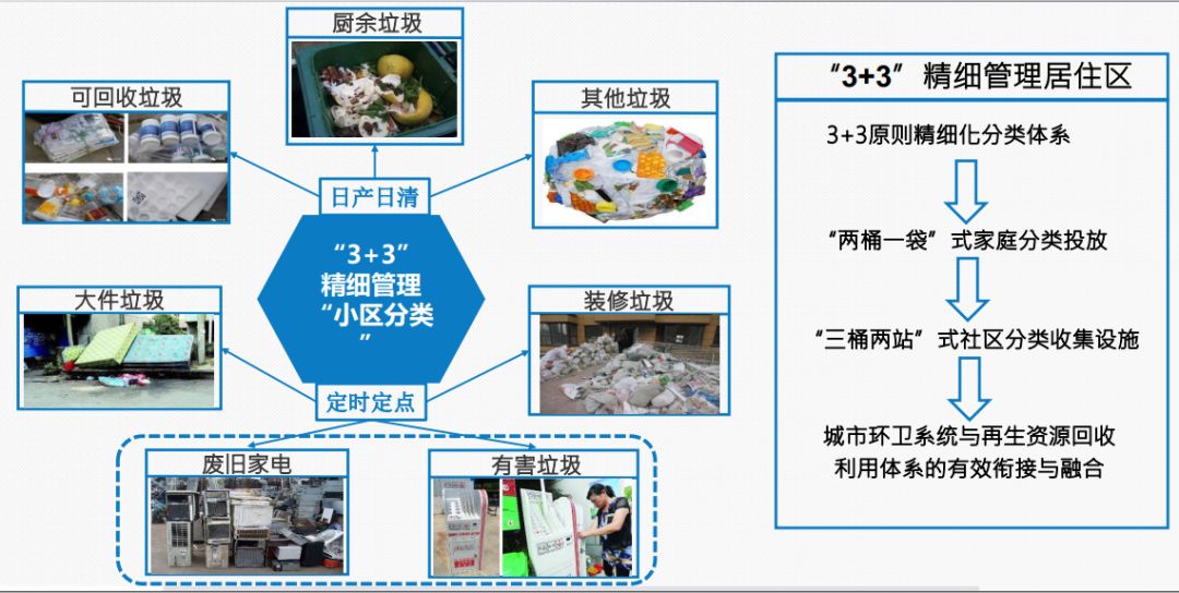 “3+3”模式實(shí)際上在社區(qū)里面分成五類垃圾——濕垃圾也就是廚余垃圾、可回收垃圾、其他垃圾、家具和大件垃圾、裝修垃圾,后來又分出了有害垃圾,但是有害垃圾界定困難而且較難收集,綜合來看實(shí)用性不大,比如手機(jī)丟棄后電池屬于有害垃圾,但是手機(jī)并不是有害的;燈管本來是用品不存在危害,燈管損壞以后汞是有害的,有人把燈管破碎以后進(jìn)行單獨(dú)收集,其實(shí)就是對汞的集中收集,由于汞是揮發(fā)的,在收集運(yùn)輸過程中更容易揮發(fā),但國內(nèi)如江蘇省、山東省明確提出要把有害垃圾列為垃圾的單獨(dú)一類。實(shí)際上居民家中理論上用品都是無害的,只有其出現(xiàn)破碎、損壞、丟棄的時(shí)候部分成分進(jìn)入到環(huán)境里才是有害的。