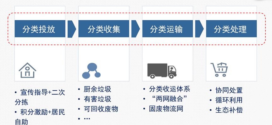 集團(tuán)按照分類投放、收集、運(yùn)輸、處理全過程進(jìn)行分類構(gòu)建與全產(chǎn)業(yè)布局,實(shí)際上是把固體廢物進(jìn)行分類收集與分類運(yùn)輸,按照“大分流,細(xì)分類”的思路,對垃圾進(jìn)行分類,實(shí)現(xiàn)全域固廢綜合管理。