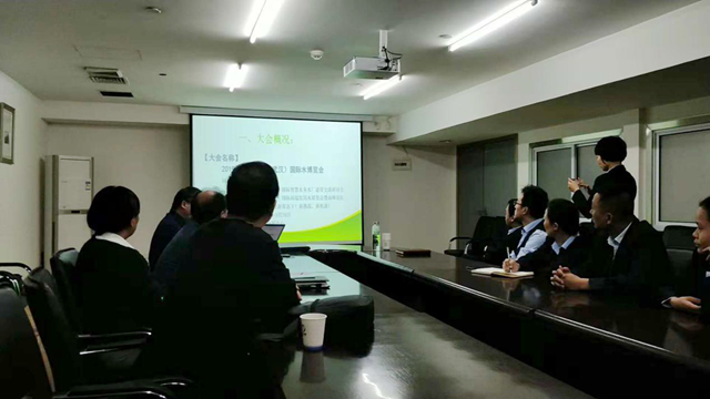 其次由水博會組委會項目運營總監(jiān)胡兵為參加會議的相關領導介紹展示2019中國(武漢)國際水博覽會項目實施方案的講解,詳見下圖