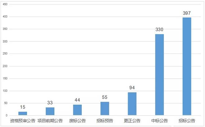 11月上旬(11月1日-10日)全國各地共發(fā)布環(huán)衛(wèi)運營類項目公開招標采購信息968個,其中:項目前期公告33個,招標預告55個,招標公告397個,資格預審公告15個,更正公告94個,中標公告330個,廢標及流標公告44個。