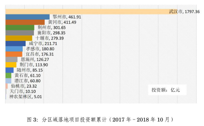 2.2017年至2018年10月,各市州累計(jì)新落地項(xiàng)目投資額情況: