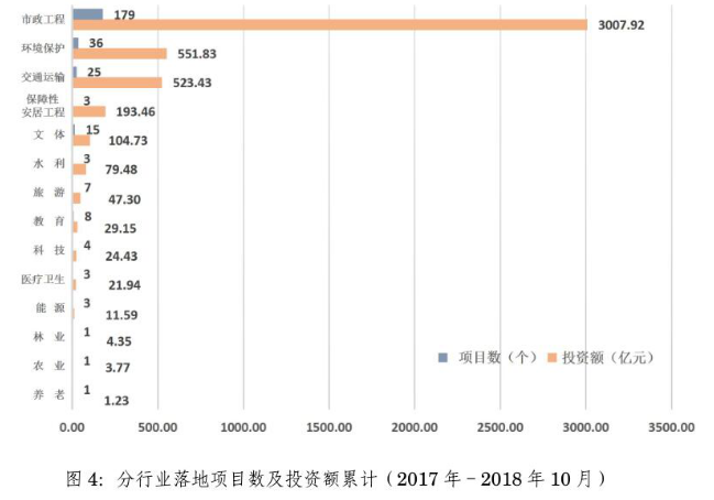 2018年10月,民營(yíng)企業(yè)以聯(lián)合體牽頭方或者單獨(dú)作為社會(huì)資本方落地項(xiàng)目3個(gè)。2017年至2018年10月累計(jì)落地項(xiàng)目114個(gè),占39.45%。